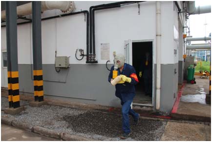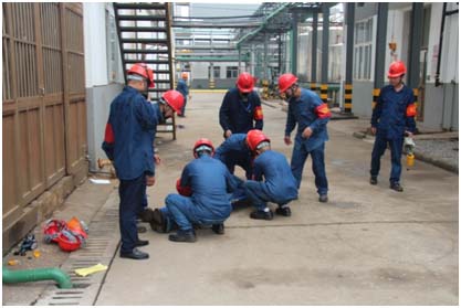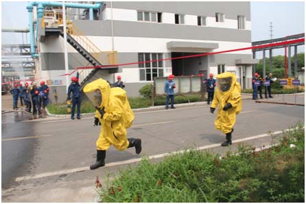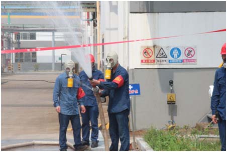 二、PEN车间氯化通氯区液氯钢瓶阀门泄漏引发周围环境恶化,突发事故的紧急处置演练
