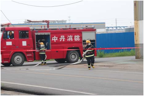 消防组参氯钢瓶区周围上空用消防水进行喷雾吸附、稀释