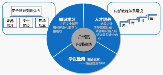 本次培训由“安全管理知识体系”和“内部教练体系建设”两大模块组成,分别设置了知识学习、人才培养、学以致用三个环节开展了为期一年的培训,培训共10个主题,累计17天课程。