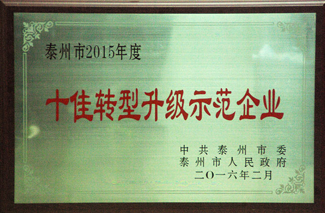 泰州市2015年度十佳转型升级示范企业